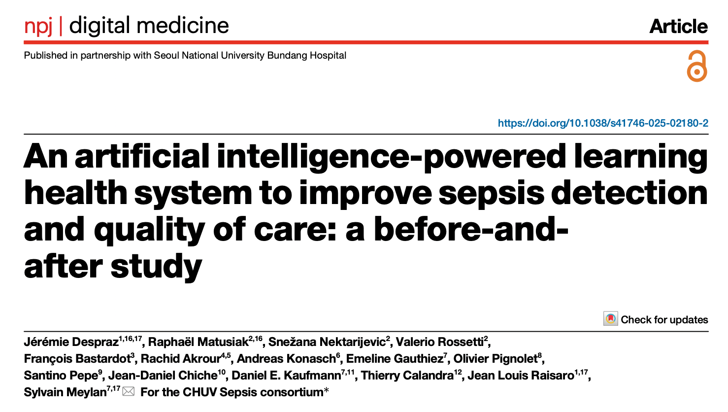 A prospective, multi-site study evaluated a machine learning–based early warning system (TREWS) that uses real-time electronic health record data to identify patients at risk for sepsis. The system continuously analyzes clinical data, including vital signs and laboratory values, and alerts clinicians when sepsis is suspected. In clinical use, the tool was associated with earlier recognition of sepsis and timely initiation of treatment. Importantly, adoption of the system was also associated with a reduction in in-hospital mortality among patients with sepsis, demonstrating its potential to improve outcomes when integrated into routine care. The study also demonstrated high clinician adoption, with the majority of alerts evaluated by providers, supporting its feasibility in real-world clinical settings. Additionally, patients whose alerts were addressed promptly were more likely to receive earlier antibiotic therapy, reinforcing the importance of timely clinical response to AI-generated alerts.